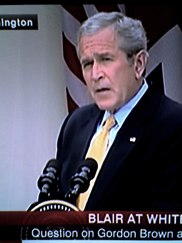 Tony Blair's final visit to the White House, live on BBC. George Bush looks and sounds even more dumb and ignorant when watched from across the planet. Though compared to the Iranian leaders we see on TV, he looks clean and well dressed. |