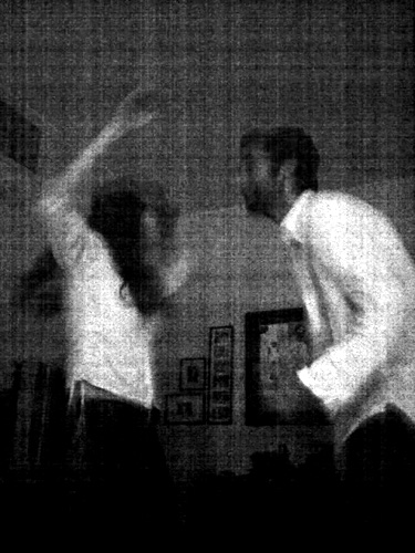 Dancers in the dark, at a small gathering of friends. |