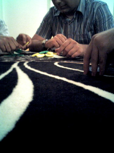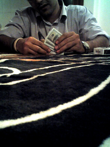 Playing cards are illegal in Iran. But that just makes them more fun and more readily available. As in the US, we play for peanuts; a $10 buy in is the max per person in this group of friends. And even then the winners usually give back their winnings so that there isn't any real gambling. |