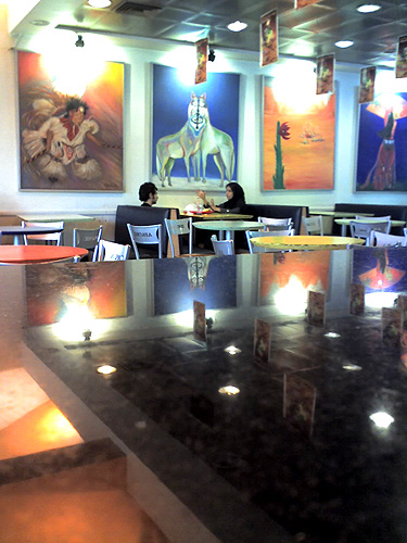 A couple enjoying a meal at Avache fast food restaurant. These hip fast food joints are actually comparatively expensive. An average meal costs $6, which is too much when you factor in the average income. |