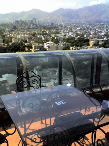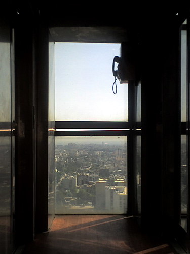 A payphone high up on the roof of Borj-e-Sefid in Pasdaran, where you get a 360 degree view of Tehran. There's even a rotating restaurant like the Westin Bonaventure Hotel in downtown Los Angeles. |