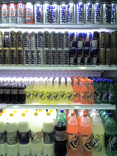 Energy drinks such as Red Bull and Hype are as popular here as they were back in the US. I've even seen the Red Bull animation commercials in Farsi! Dough is my drink of choice (bottom left); it's yogurt mixed with water -- tastes much better than it sounds. |