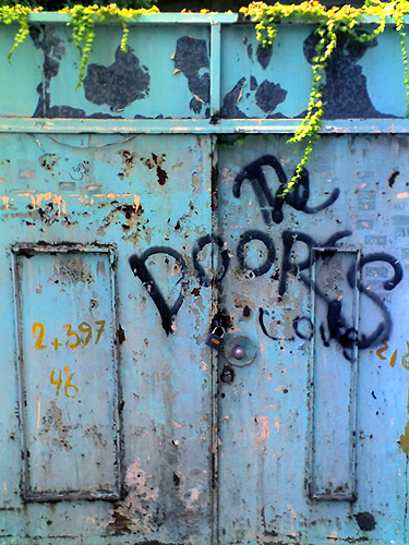 Love, new album by The Doors. An old door of an abandoned building in a semi-expensive neighborhood. Just the land behind this door costs around half a million US Dollars. |