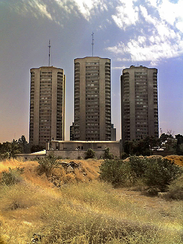I used to go to Razi junior high right across the street from the Eskan Towers on Mirdamad and Valiasr Streets. They used to be three of a handful of high risers in Tehran. Now high risers are everywhere. One of my earliest memories as a teenager is getting burgers and fries at the Eskan Restaurant. Roll over for this photo before color correction. |