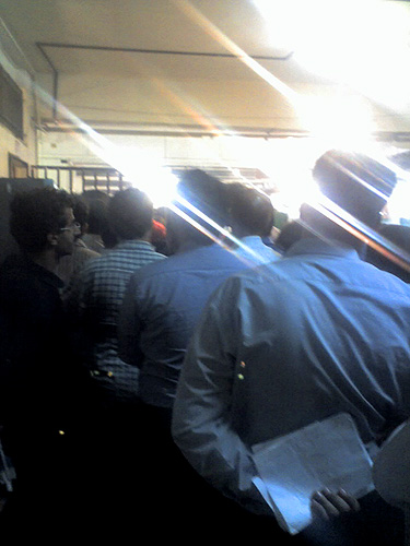 The man on the right is the embodiment of the religious working class who helped get Ahmadinejad elected in hopes of improving his life. Apparantly, it didn't work out so well for him. Here he sits on his second week of chasing after his gas ration card. |