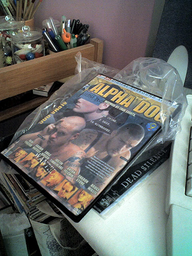 Last year, back in LA, my friend Melissa worked on the post-production sound for both Alpha Dog and Dead Silence. So you could imagine how surprised I was to find two black market copies of these movies sitting next to each other on someone's desk. (I swear Melissa, it's not staged!) Hollywood's global reach; at a dollar a piece. |