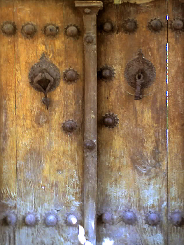 The door to the late Ayatollah Taleghani's home. Among his other beliefs he thought that the head scarf did not have to be mandatory. But unfortunately he died soon after the revolution and with him died his more moderate interpretation of Islam. So I was told. But he seemed like a nice man. |